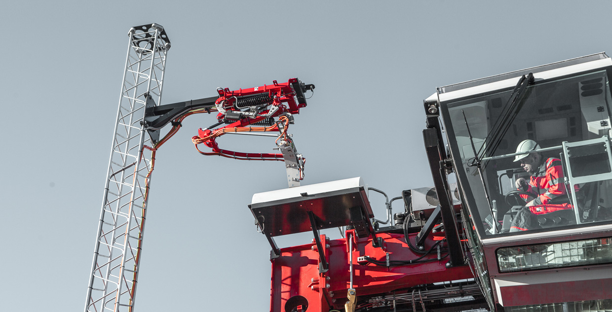 The Kalmar FastCharge solution is based on the same opportunity charging technology that is used in electric buses. The charging station with a pantograph direct current charging system is located flexibly on the working route of the machines in the terminal. The machine has modern Lithium-ion (Li-ion) batteries which enable fast charging to be used. Charging happens during the idle time in the machine working cycle when it has stopped to wait for the container. Typical charging time in operation is 30 to 180 seconds, and with the maximum charging power of 600 kW, full charge can be achieved in a few minutes.